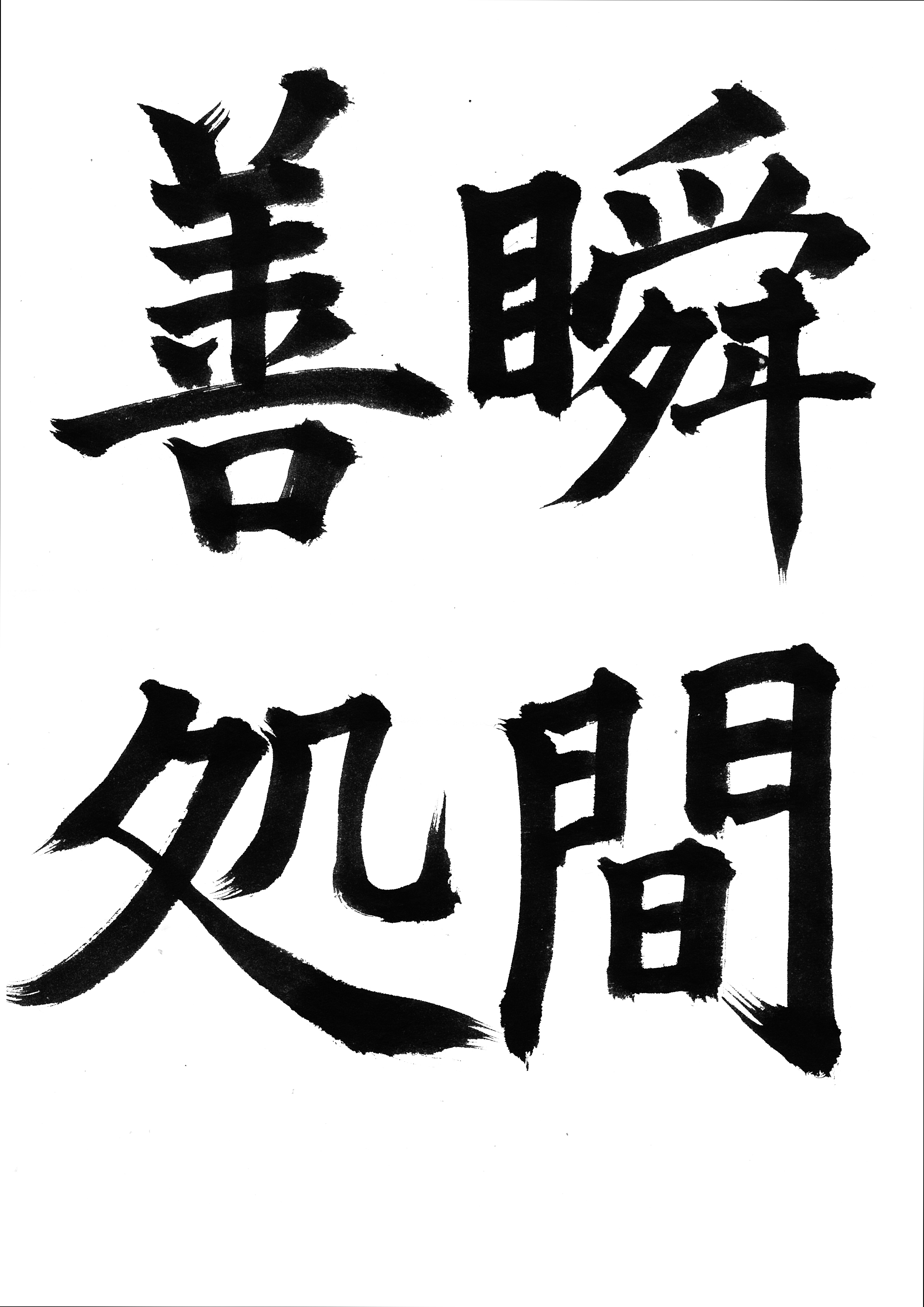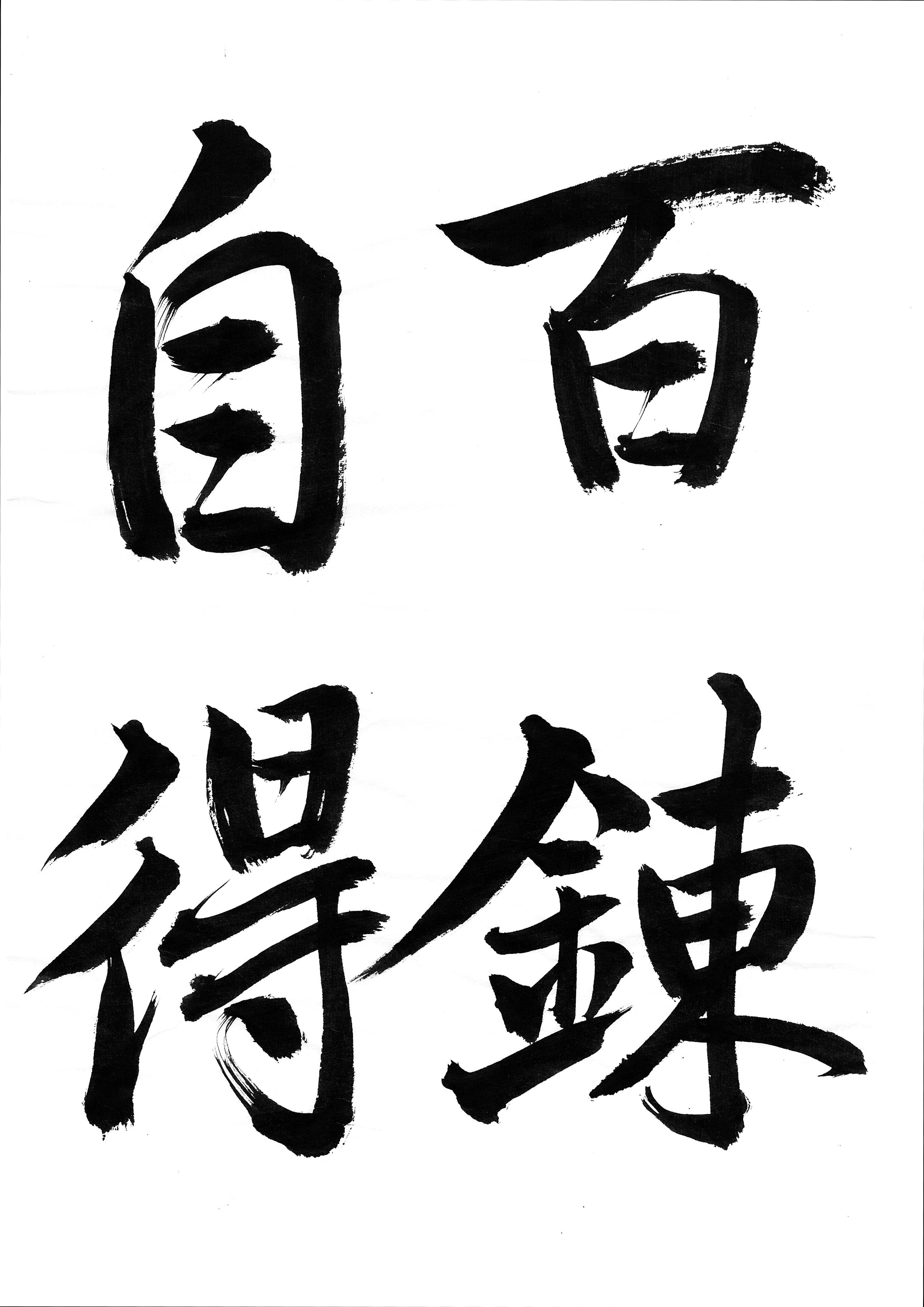 D.中学生:1、瞬間善処・2、百錬自得(行書)