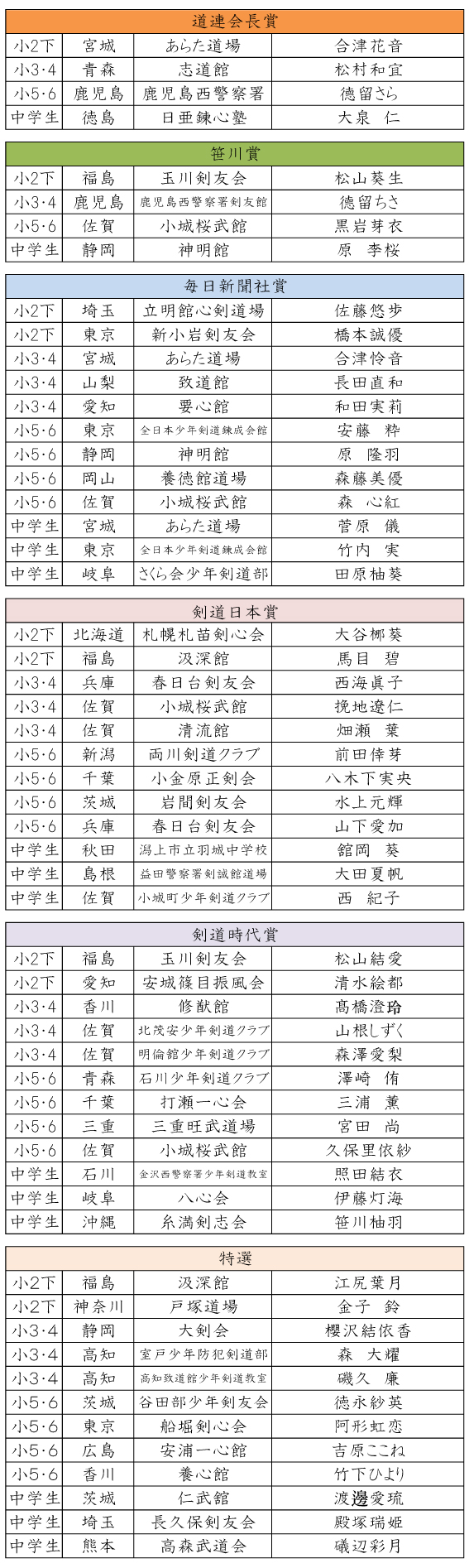 ご応募頂きました少年剣士少女剣士、また道場の先生方に心より御礼申し上げます。